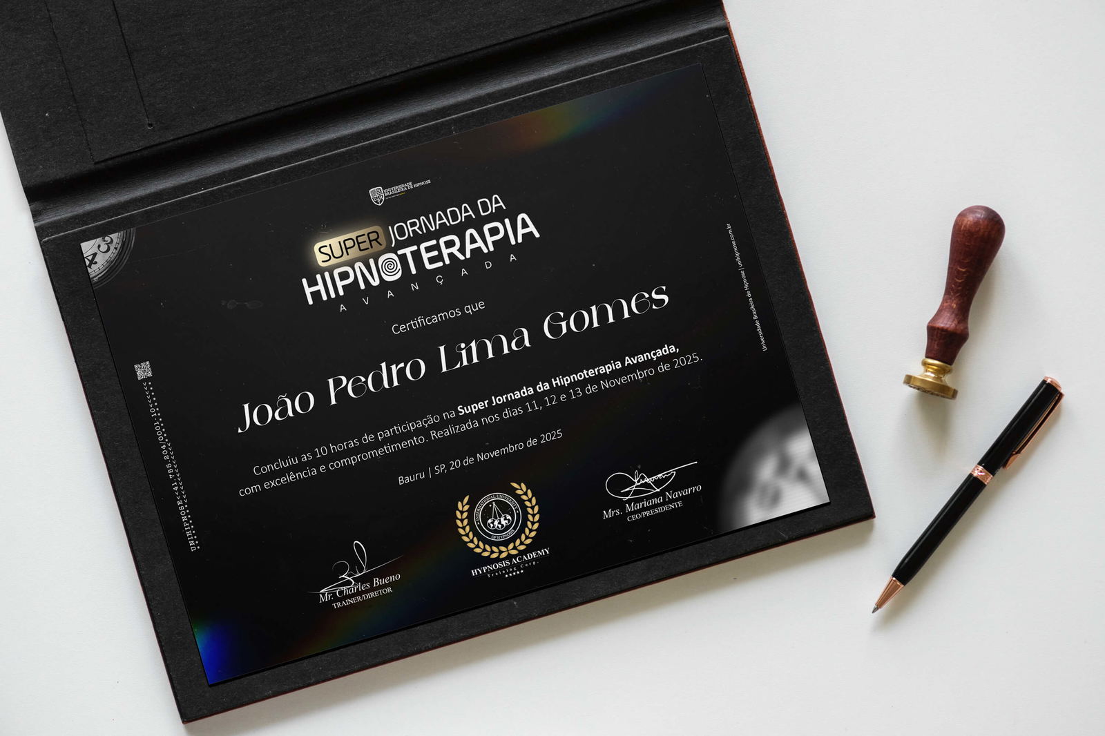 Iremos PREMIAR a sua participação nos 3 dias da Super Jornada da Hipnoterapia Avançada. Além do OURO exclusivo que iremos entregar nesses 3 dias, você também terá uma linda certificação.